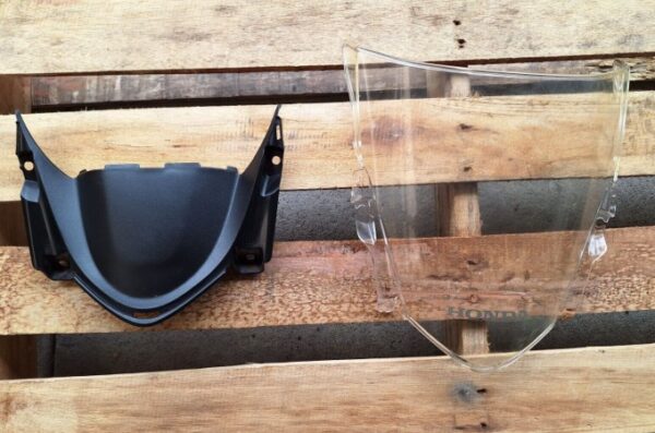 Honda CBR500r screen. Removed from a 2013, but will fit other year models, if unsure please contact us. Looked great on the bike but has some light scratches from use. More photos can be sent on request. Plastic panel that sits under it is included in the sale.