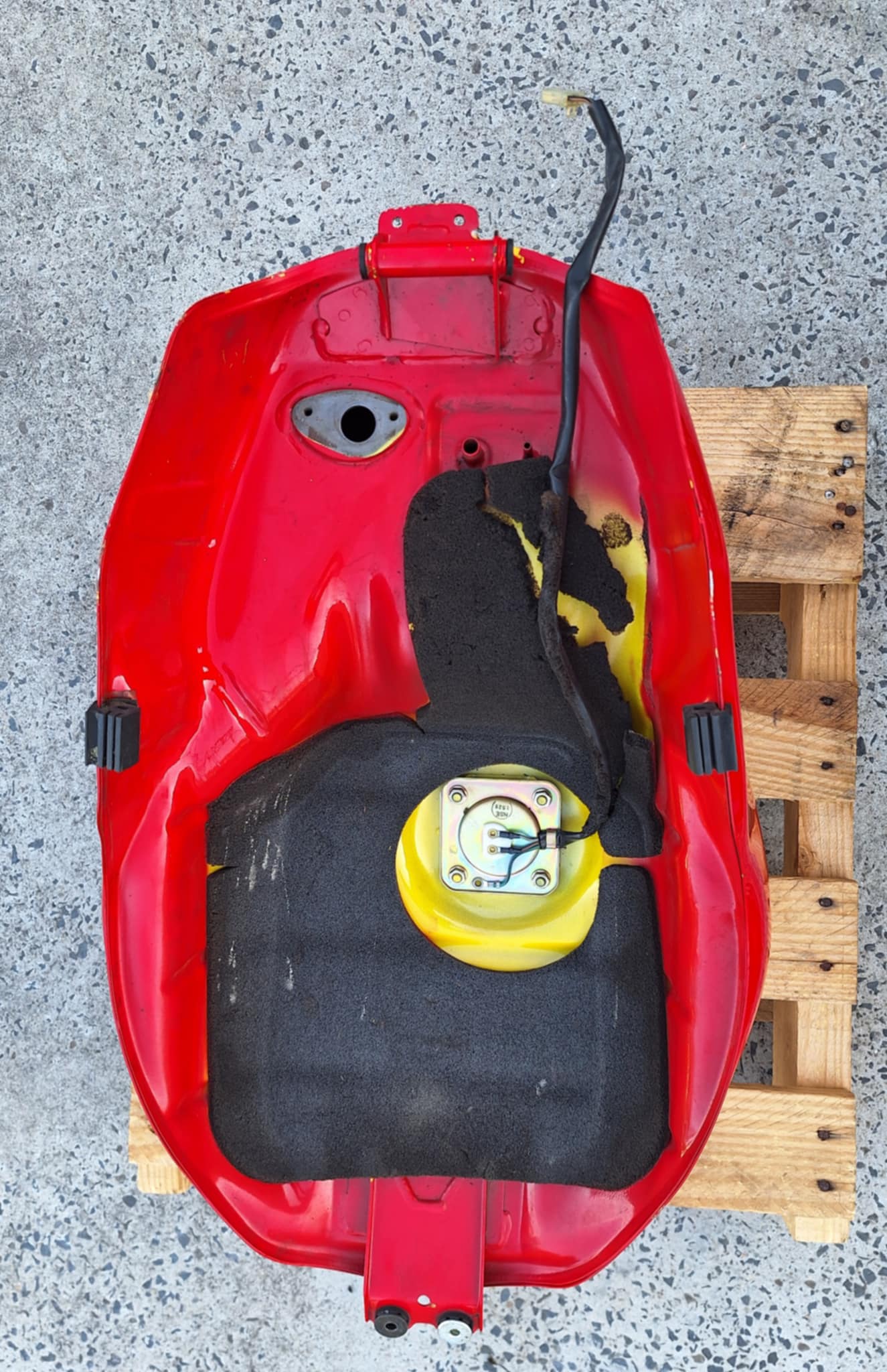 Honda VTR 1000 fuel tank. One small dent on right side. Inside is in very good condition, comes with fuel sender. 16L Removed from a 1999 model. Fits all early model VTR1000’s with analogue dash 1997-2000. Later models (2001+) have a bigger tank and digital dash. No fuel tap or fuel cap/key.