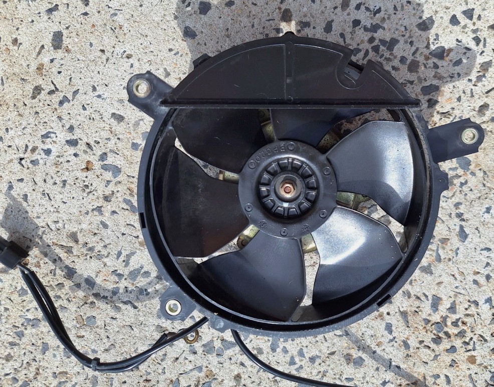 Honda VTR 1000 right radiator thermo fan blades and shroud. In good condition and has been tested to confirm it is in working order. Removed from a 1997 model, is compatible with all year models, the only difference is the color.