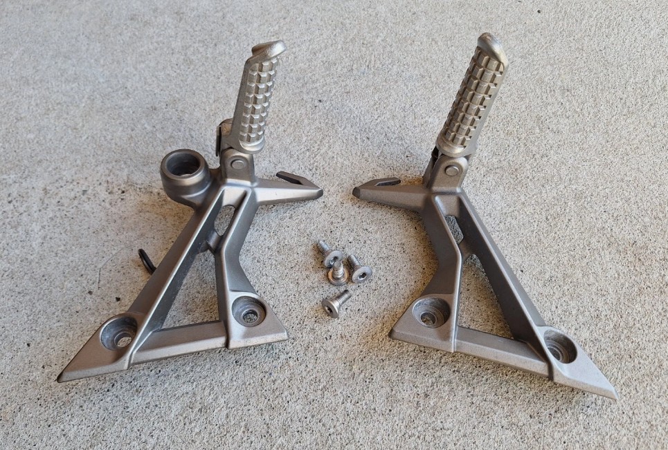 Kawasaki Ninja300/EX300 pillion foot pegs in good used condition, no damage. Mounting bolts included. Removed from a low km 2012 model, compatible with other year modes, if unsure please contact us.