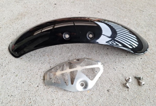 Royal Enfield 650 front fender. Removed from a 2022 Royal Enfield Continental GT650, should fit all 650 Royal Enfields, if unsure please contact us. Both brackets and bolts included.