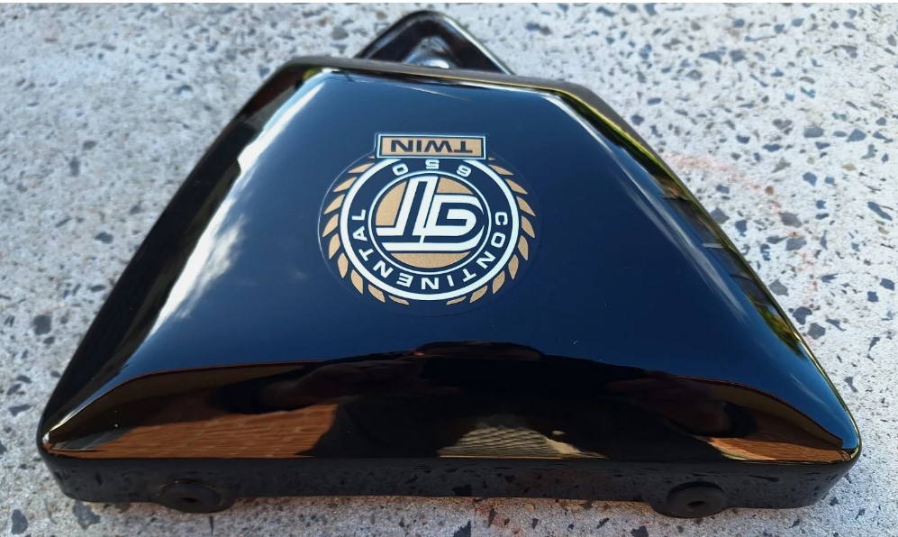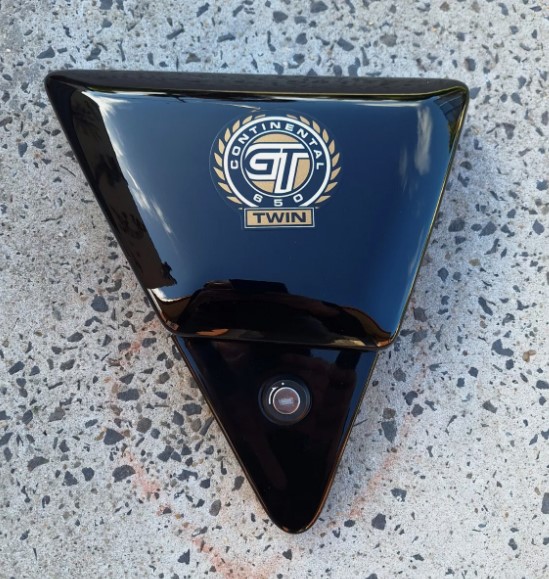 Royal Enfield Continental GT650 right side, side cover in good used condition. Looked great on bike no scratches or marks. Removed from a 2022 Royal Enfield continental GT650. Can come with key (extra charge), lock can be removed. Removed from a 2022 Royal Enfield continental GT650.