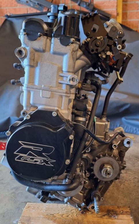 2004 Suzuki GSXR600 complete engine nothing removed. Including ignition coils, throttle body injectors sensors and starter motor etc. We do have videos of the bike running. Test ridden before being dismantled. 47,000km, airbox and sprocket cover will come included in sale. There are some scratches on timing cover. Comes with 28 day warranty.