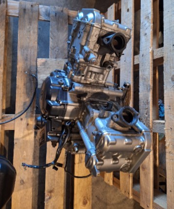 2002 Suzuki SV650 complete engine with 48,000km. We do have video of the bike running. The engine starts easy and sounded very healthy but only idled with choke on and revved out with choke off. Carburetors had been removed and cleaned. Apparently carby kit installed but not tuned, likely the problem was a vaccum hose leak as they were brittle but selling price reflects this.
