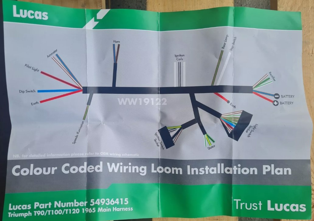 Triumph 12v Lucas Wiring Harness – T90/T100/T120 – 1965 – Brand New
