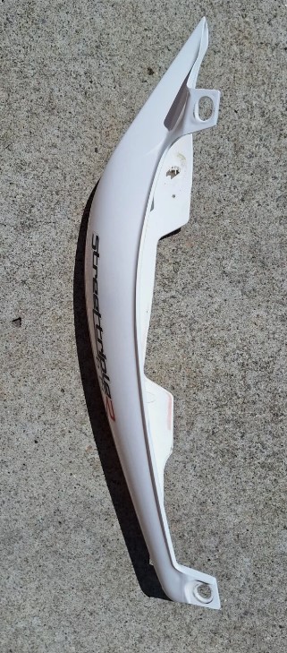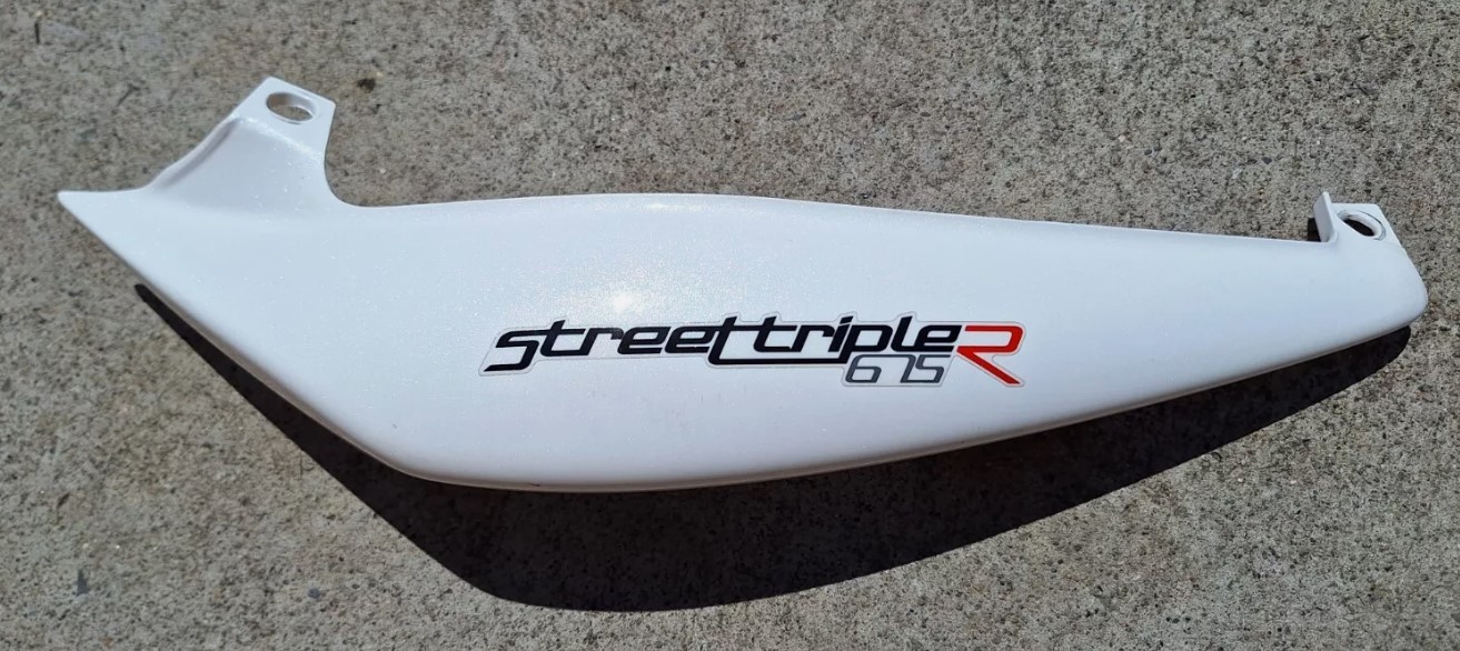 Triumph 675 Street Triple R left side rear fairing. In good used condition. No damage there are some very small light marks from normal use that were not noticeable on the bike. 2007-2011 compatible.